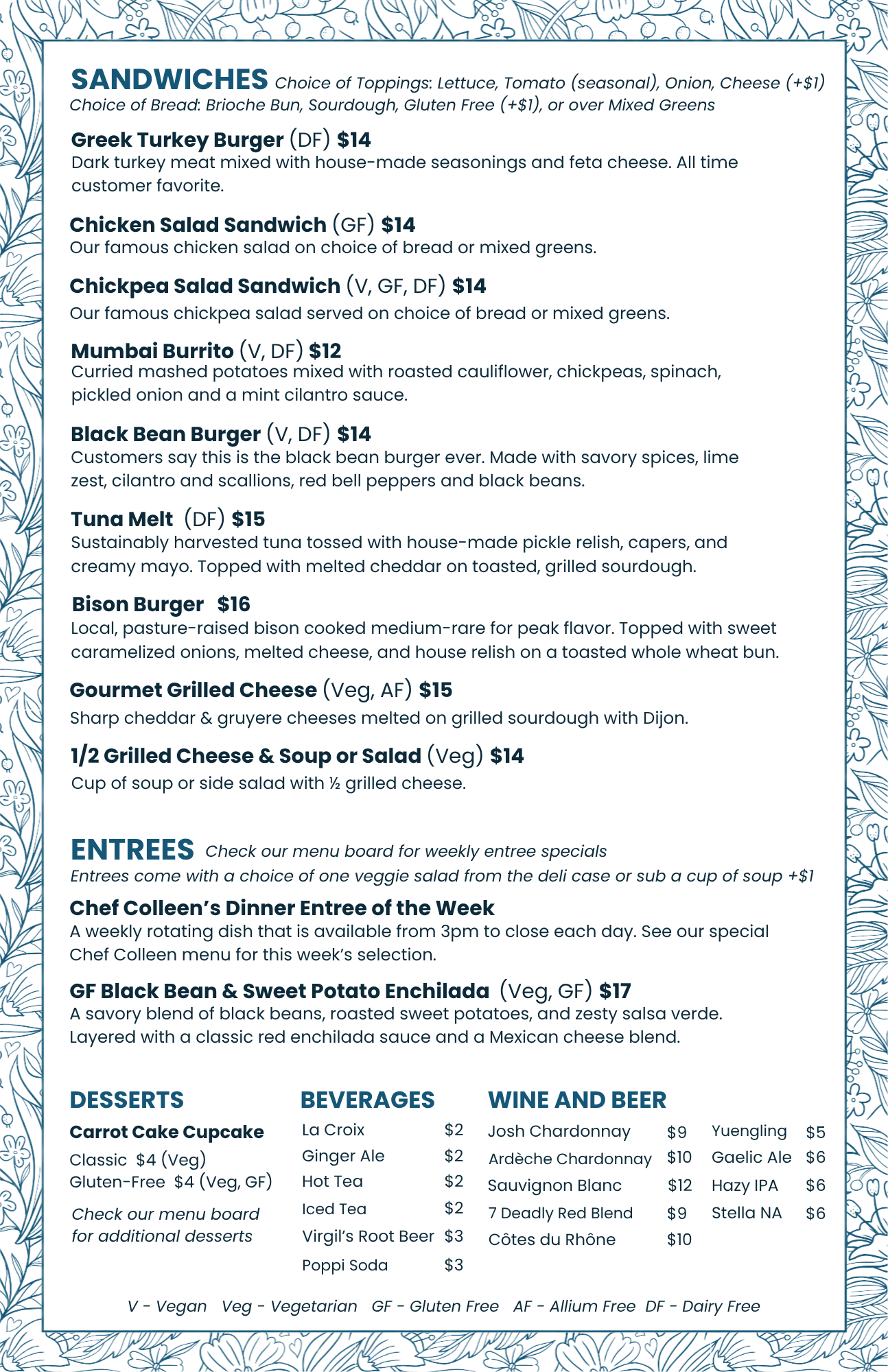 SEASONAL MENU FOR DINE-IN OR TAKEOUT